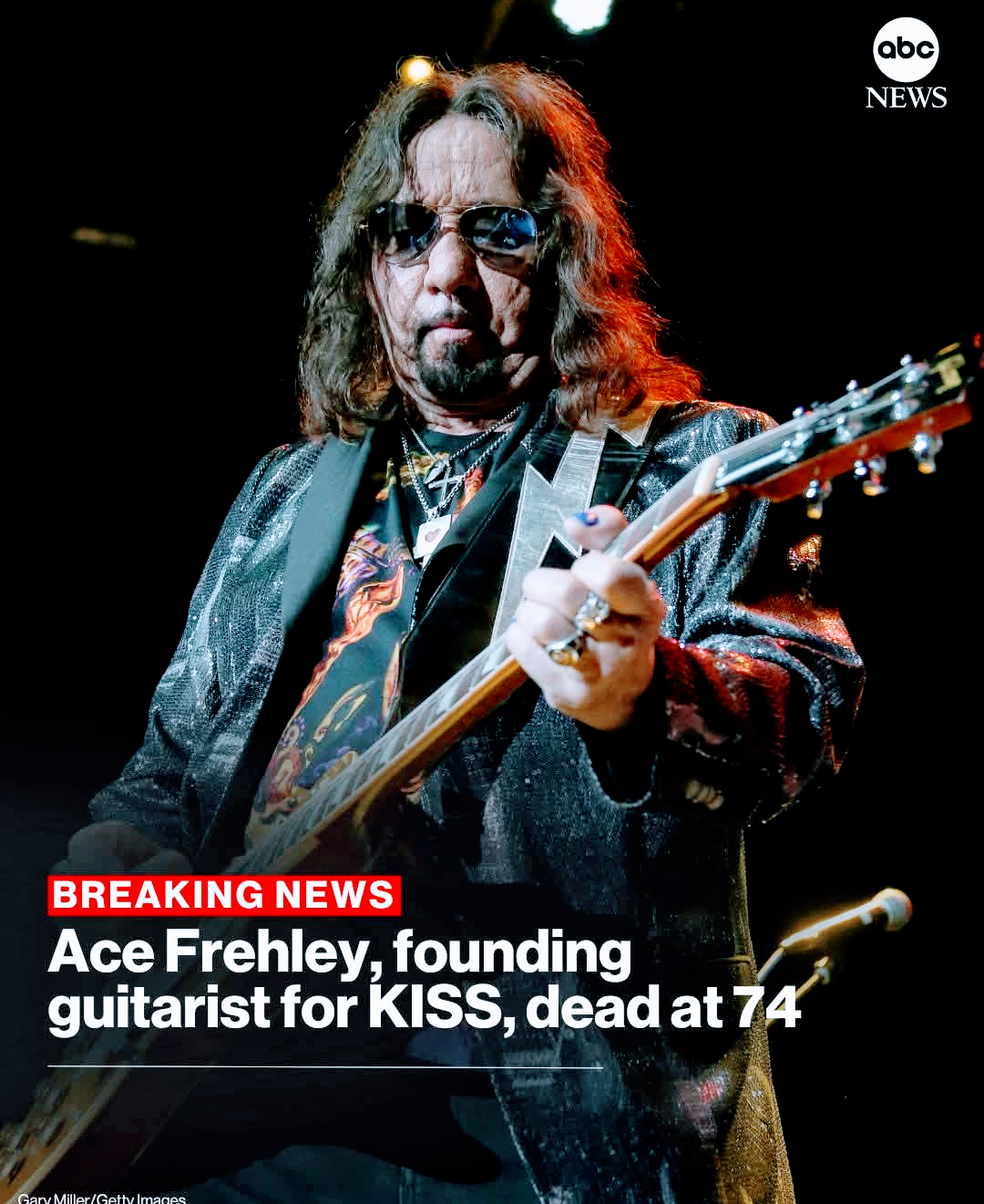 BREAKING: Ace Frehley, the founding guitarist for the rock band KISS, has died at age 74. Read more: