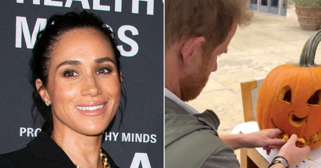 The former Suits star, 44, usually obscures her children’s faces by only photographing them from behind, but her latest video offered fans a peek at their features as they ran around while their father Prince Harry, 41, carved a pumpkin.