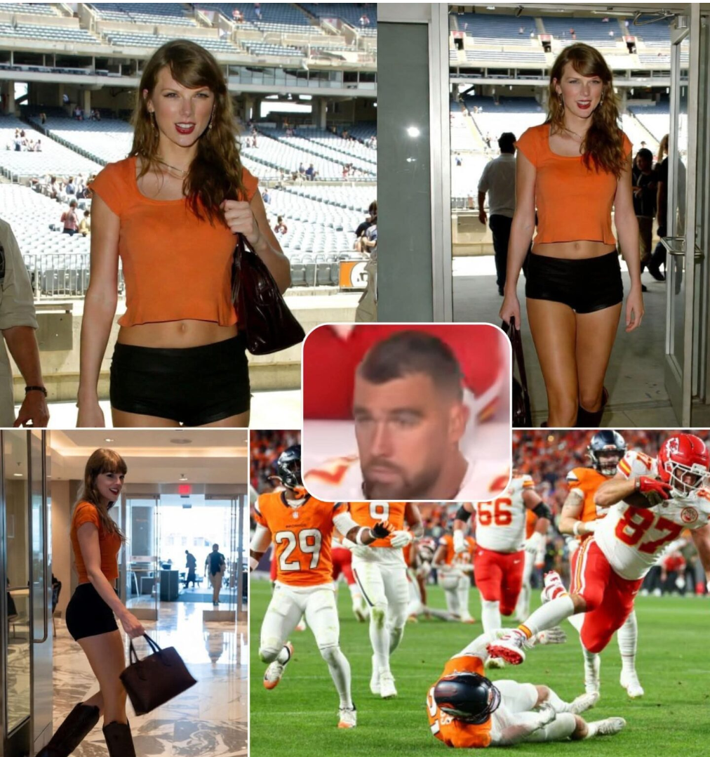 Taylor Swift Makes a Late, Picture-Perfect Appearance at the Chiefs–Broncos Game, but Fans Call Out Her “Confusing” Outfit—Saying the Color Looks Like She’s Supporting the Broncos—and Travis Kelce’s Reaction Once He Realizes How They’re Treating Her Is Impossible to Ignore.